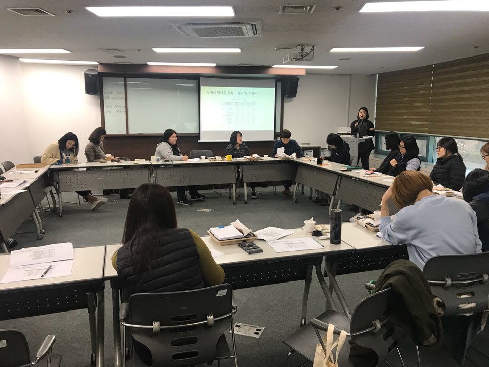 지난 12월 4일 수요일 북한이탈경로와 삶과 지원 방향을 위한 강의가 아트컬리지3 에서 소장님 이하 직원들이 참석한 가운데 진행되었습니다. 다시함께에서는 북한이탈 여성들 관련 주제에 관심을 갖고 이들 여성을 이해하고 그들의 경험 안에서 그리고 한국에서의 정착과정에서 우리가 함께해야 할 접점은 무엇인지 고민해보는 시간을 가졌습니다.