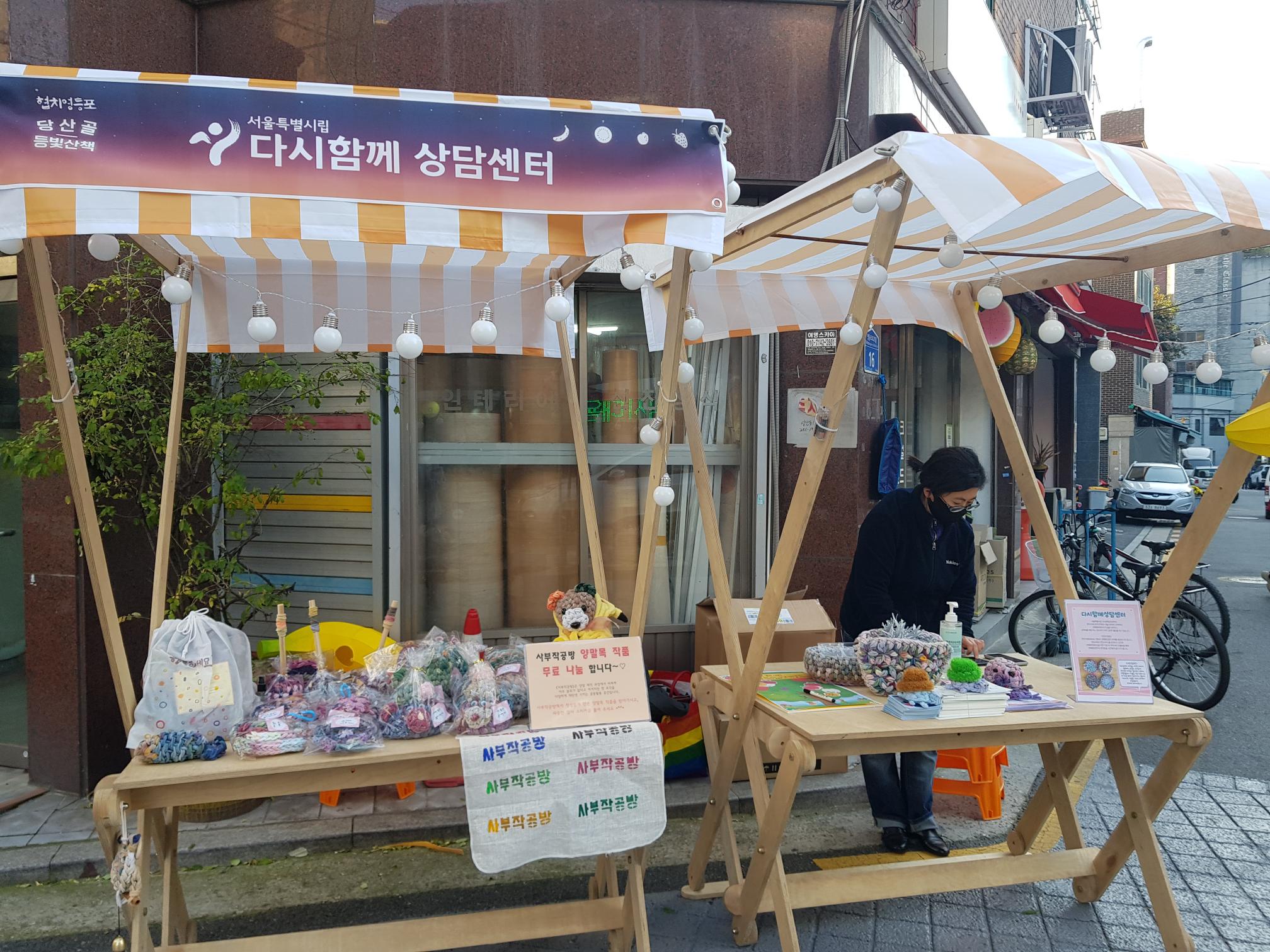 사부작 공방은 ”사부작 사부작“ 손을 움직여 생활용품이나 장식품을 만들며 소소한 하루를 만들어가는 공간이예요.양말 제작과정에서 버려져 아무 쓸모가 없다고 여겨지던 천 조각을 컵받침, 가방, 방석, 꽃화분 등으로 다양하게 재탄생 시키고 있는 곳이죠.특히 ”중노령층 사각지대 성매매 피해 여성“들에게 자활의 기회를 제공하기 위해 운영하는 공간인 만큼 더욱 큰 의미가 있는 곳이라고 할 수 있어요~코로나 장기화로 마음이 우울하고 힘드셨죠?사부작 공방에서는 버려지는 원단 실을 활용하여 ‘걱정인형’을 만들었어요.첫째, 지금 현재 나의 걱정을 작은 종이에 적기!!둘째, 버려지는 원단실로 걱정인형 만들기셋째, 걱정인형의 얼굴에 표정 그려넣기~마지막으로, 나의 고민과 근심을 ‘걱정인형’에게 털어놓기~~우리 모든 고민과 근심을 걱정 인형에게 맡기고 생기있고 활기찬 봄을 맞이해보아요~~